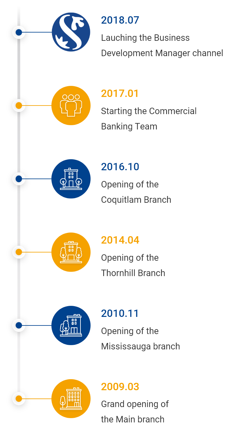 Shinhan Bank Canada is a Federally Regulated Financial Institution which is wholly-owned subsidiary of Shinhan Bank Korea. Our doors opened in March 2009 and since that day we have been privileged to serve our communities. We have continued to grow our presence, with branches in North York, Mississauga, Thornhill and Coquitlam in British Columbia. Our ultimate goal is to help clients prosper through our expertise, create an environment where our people thrive and unlock their full career potential and enrich our communities.
