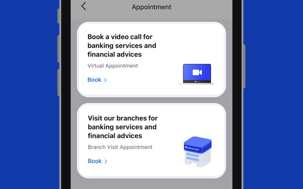 Step 2 : Choose whether you’d like to book a video call or visit a branch for banking services and financial advice.