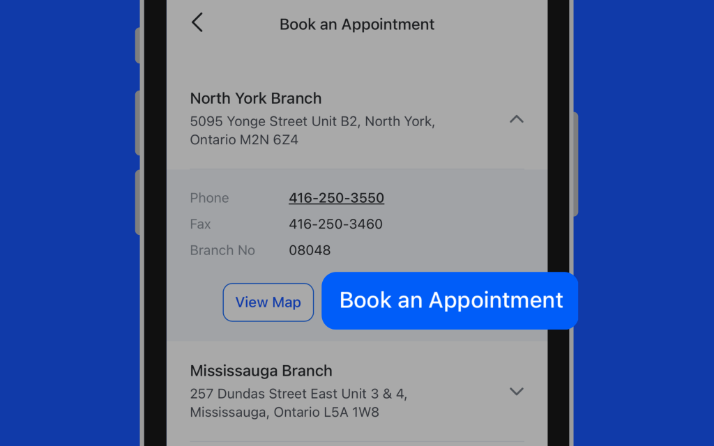 Step 4: Review the selected branch’s details and tap ‘Book Appointment’ to proceed with the booking.